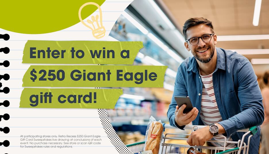 At participating stores only. Retro Recess $250 Giant Eagle Gift Card Sweepstakes live drawing at conclusions of each event. No purchase necessary. See store for Sweepstakes rules and regulations.